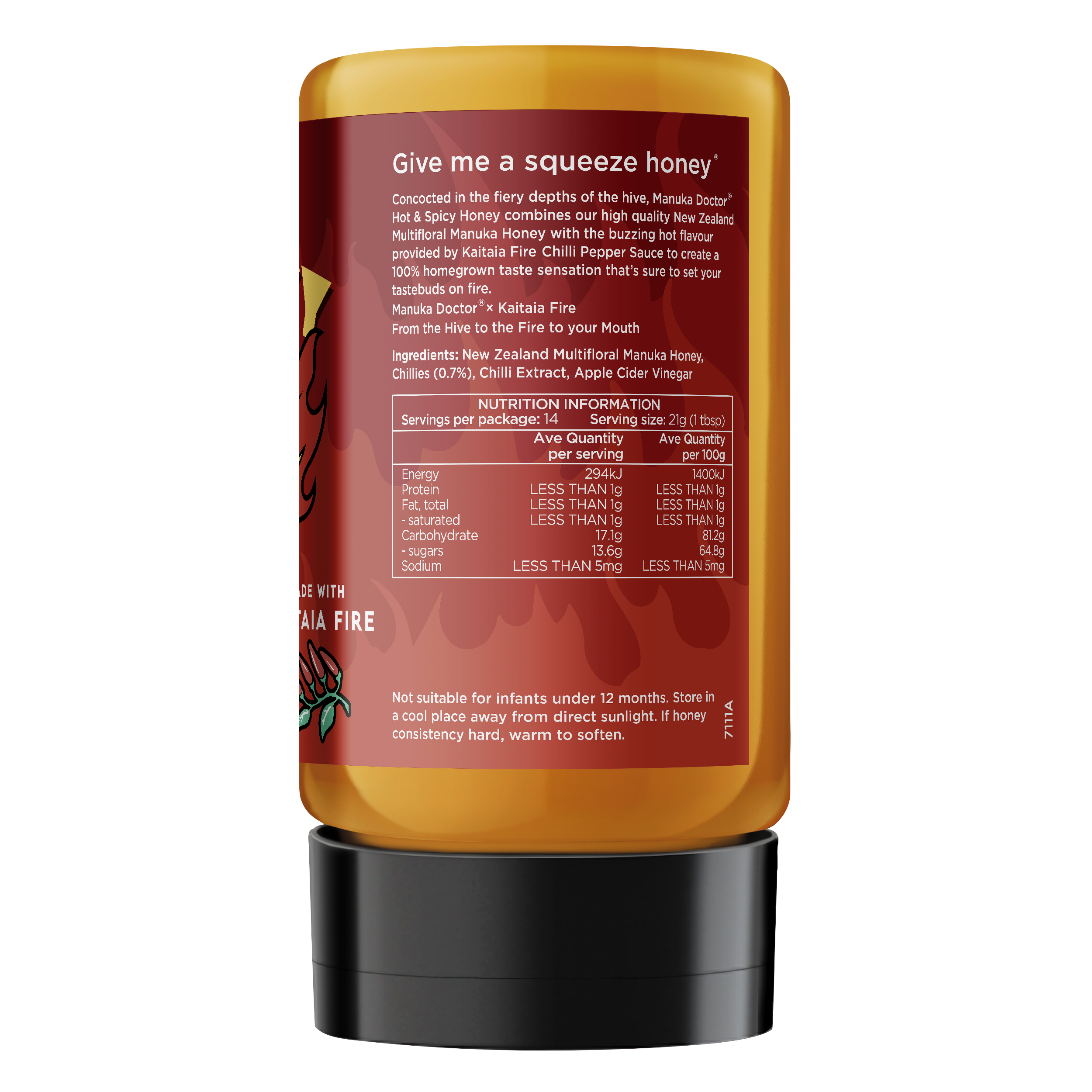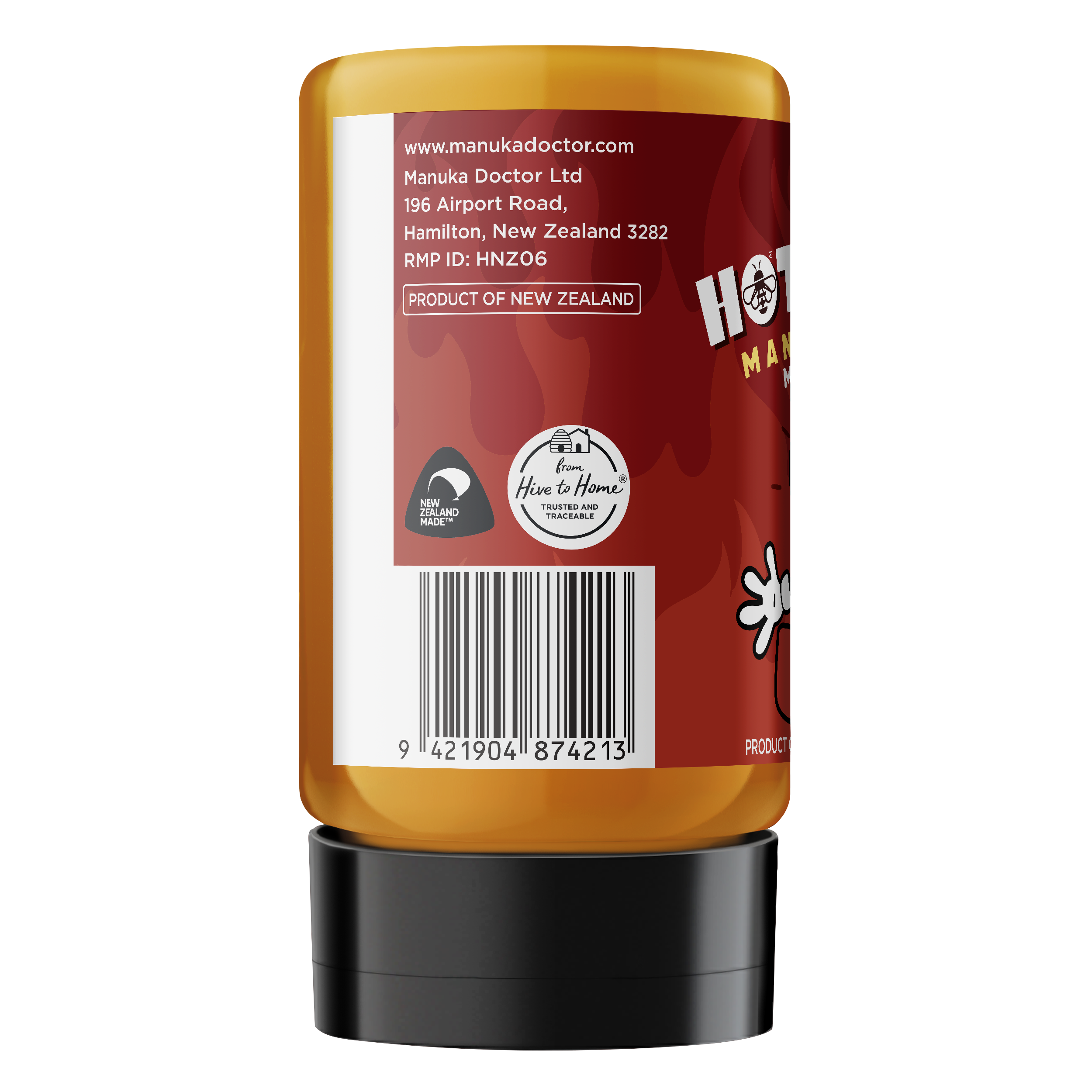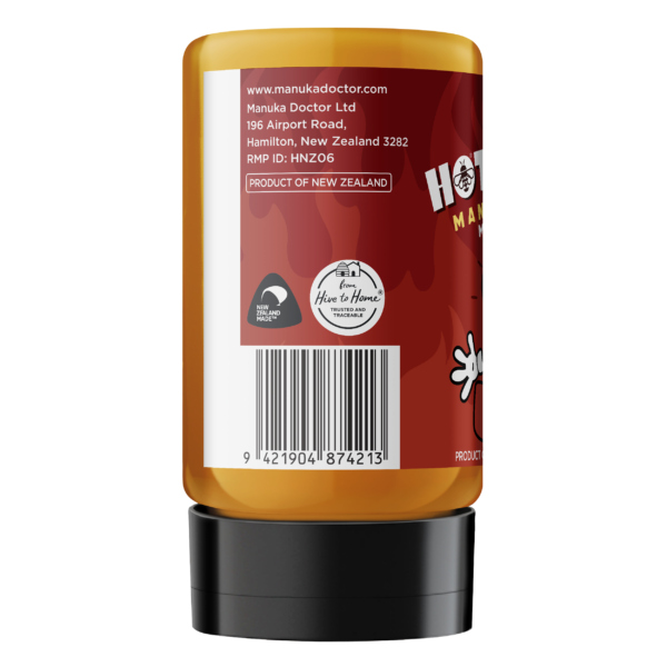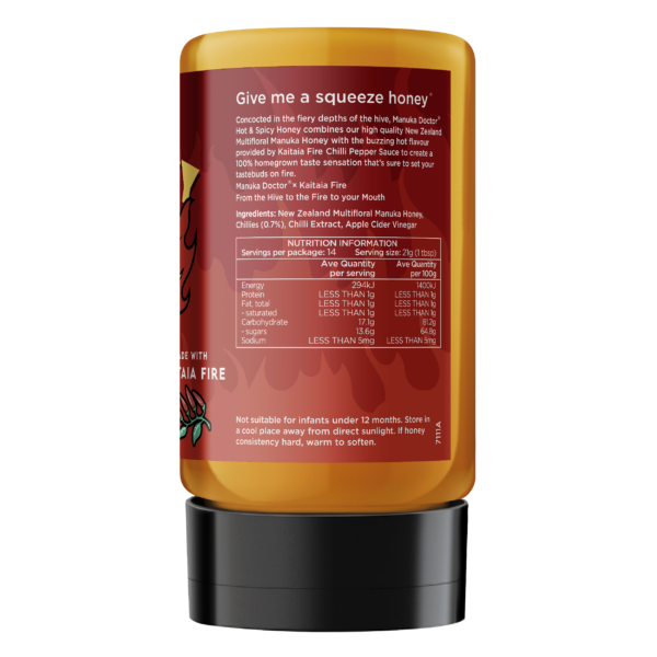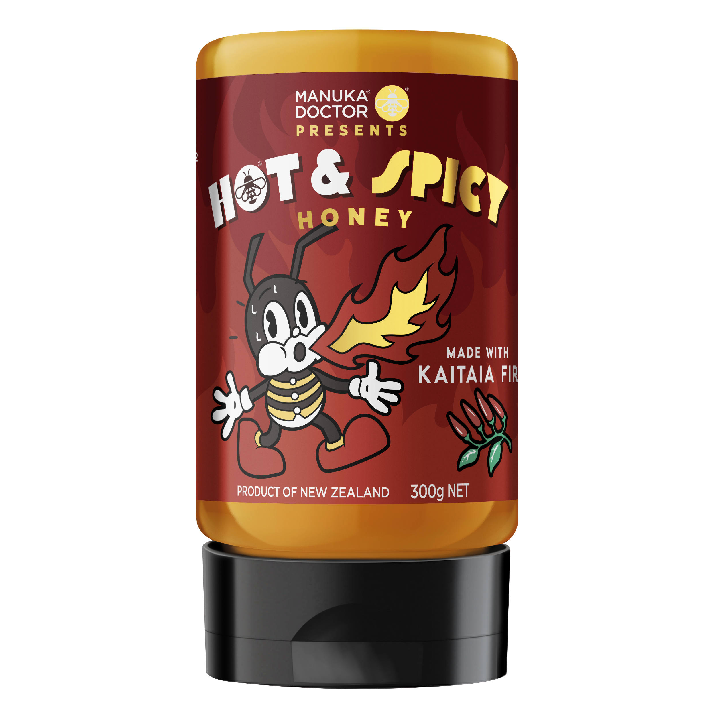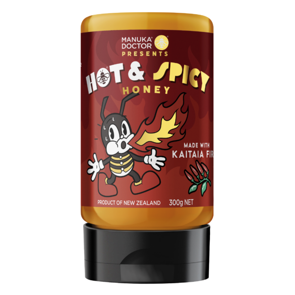 Concocted in the fiery depths of the hive, Manuka Doctor® Hot & Spicy Honey combines our high quality New Zealand Honey with the buzzing hot flavour provided by Kaitaia Fire Chili Pepper Sauce to create a 100% homegrown taste sensation that’s sure to set your tastebuds on fire.